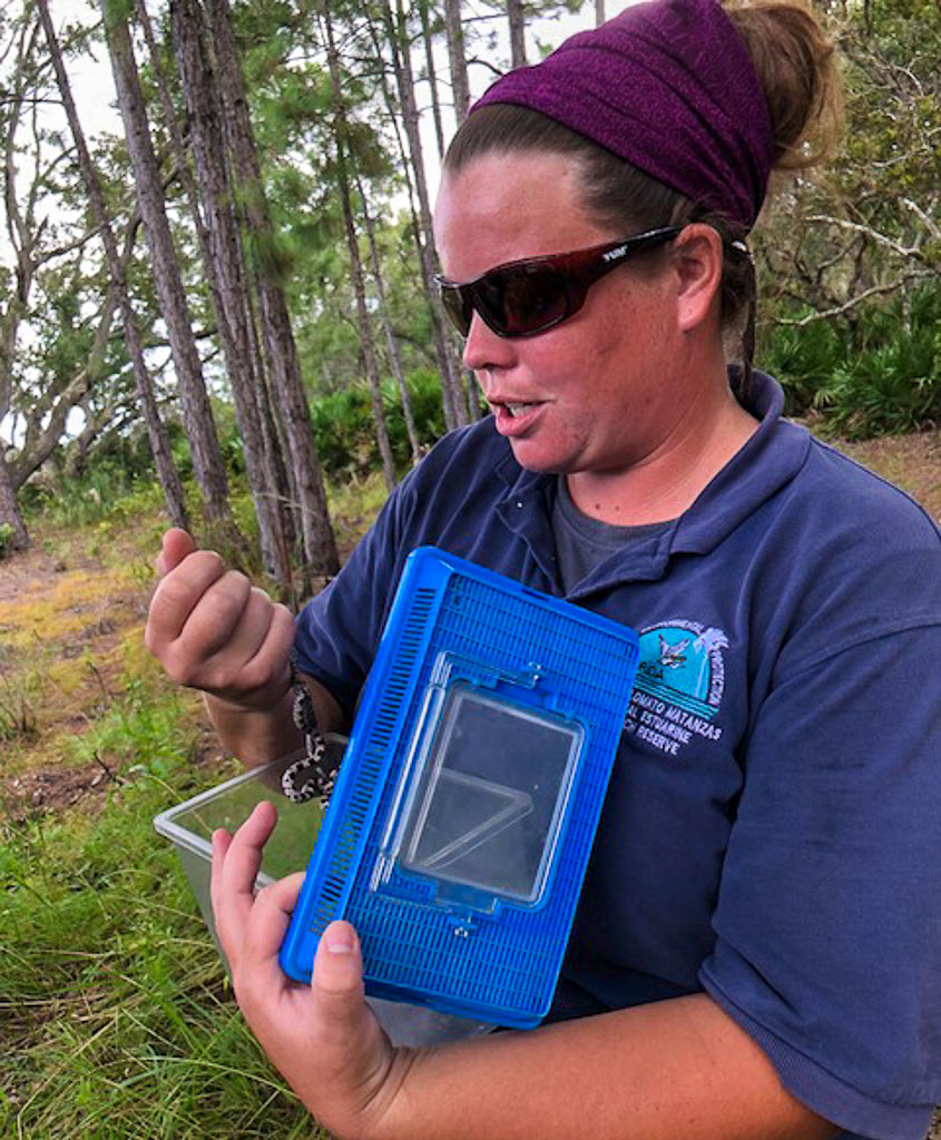 Soon, the corn snake and yellow rat snake will have a new home, too. A much larger snake enclosure is currently being built. The new enclosure will be 6 feet in height with plenty of vines and branches for the snakes to climb. Once complete, the enclosure and its residents will be on display at GTM Research Reserve’s Education Center.