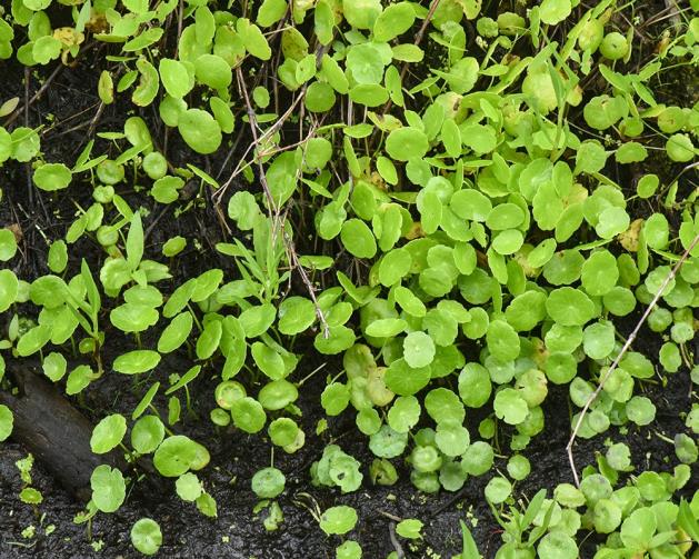 Fortunately, you don’t have to trudge through the swamp and get harassed by various vines and rushes (I’m looking at you, Juncus roemerianus) to see a great deal of the amazing plants that line our monitoring transects. For example, our spotlight today shines on Hydrocotyle umbellata, which is quite common in urban areas as well. H. umbellata goes by a couple different aliases; some may know it as pennywort, others may be more familiar with dollarweed. Whatever you call it, you have likely seen it from time to time. Yes, yes and to many it is quite the nuisance yard weed. Growing on sandy upper edges of marshes as well as pond and lake shores, the silver-dollar shaped leaves of the pennywort are a common sight in many coastal states to which they are native, stretching as far west as California and all the way up the east coast to Halifax, Nova Scotia.