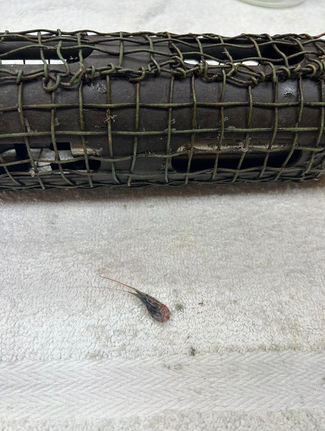 I spent most of my time here at GTM with SWMP manager Shannon Dunnigan. She was such an amazing help during my internship and taught me the ropes of SWMP. What is SWMP? The system-wide monitoring program. Read more about this program and see SWMP data here: https://gtmnerr.org/research/weather-and-water-quality/. Shannon took me once every two or three weeks on a boat named Bertha to swap data sondes. These bad boys take a massive amount of data at sites along waterways of the reserve. These are located on channel markers in the San Sebastian River, around Pine Island and Fort Matanzas, and also in Pellicer Creek. A guard protects the individual sensors of the sonde from biofouling and the elements, but sometimes I saw a peppermint shrimp or even a couple of crabs. Once, I saw this baby fish with some bite power.