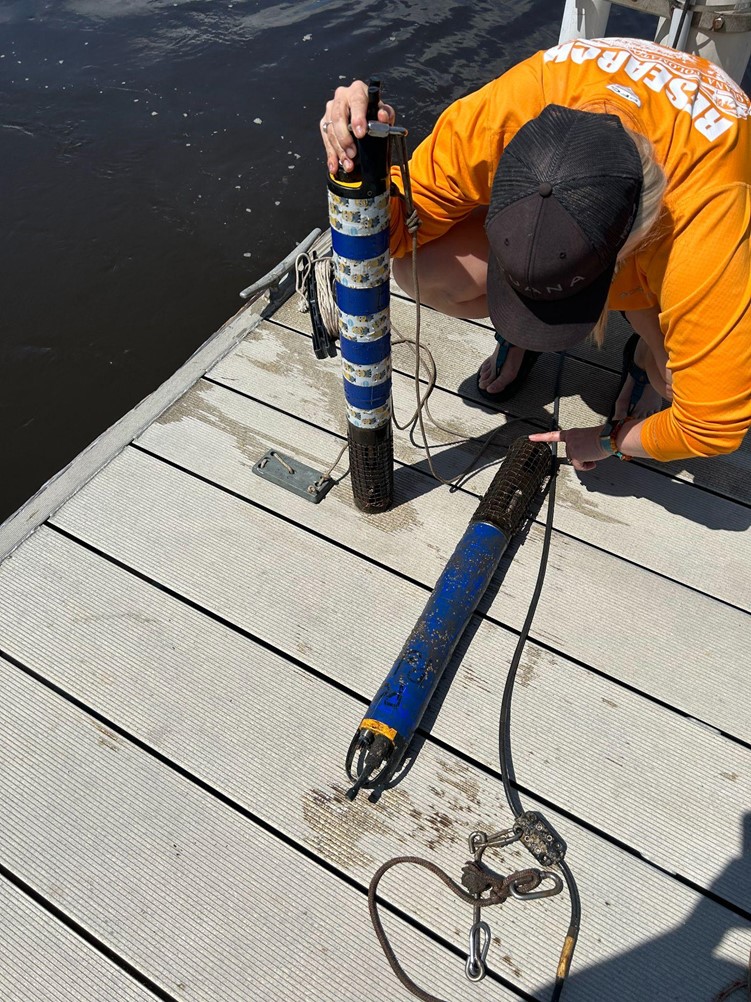These sondes need to be calibrated before deployment to make sure the sensors take proper data to the right standard. Each sonde also needed to be post-calibrated and cleaned within 24 hours to verify that the data taken isn’t skewed beyond a certain criteria. If a post-calibration of a sensor is too off, it is time to troubleshoot and determine if the whole dataset can be submitted to NOAA or of use to anybody. This is handled by Shannon and Katie Petrinec (SWMP Data Specialist). I learned how to calibrate and post calibrate and even did some on my own!